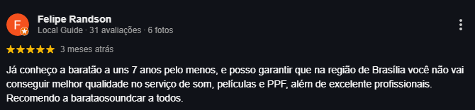 A Baratão Sound Car é referência há mais de 25 anos na aplicação de películas automotivas, PPF, som e acessórios. Somos a única loja autorizada 3M em Brasília com atendimento especializado, instalação rápida e materiais certificados.